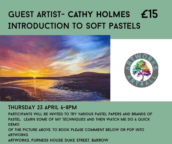 Cathy is a renown local artist and member of Barrow Society Of Artists. Cathy specialises in soft pastels and will be running this introductory workshop.
